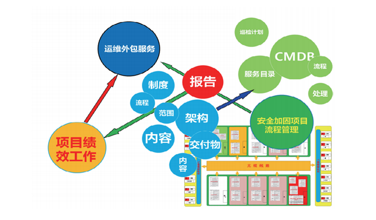本次项目采取了规范运维的各项措施,其中包括服务目录的建立,运维流程的设计、培训及绩效工作的开展等: